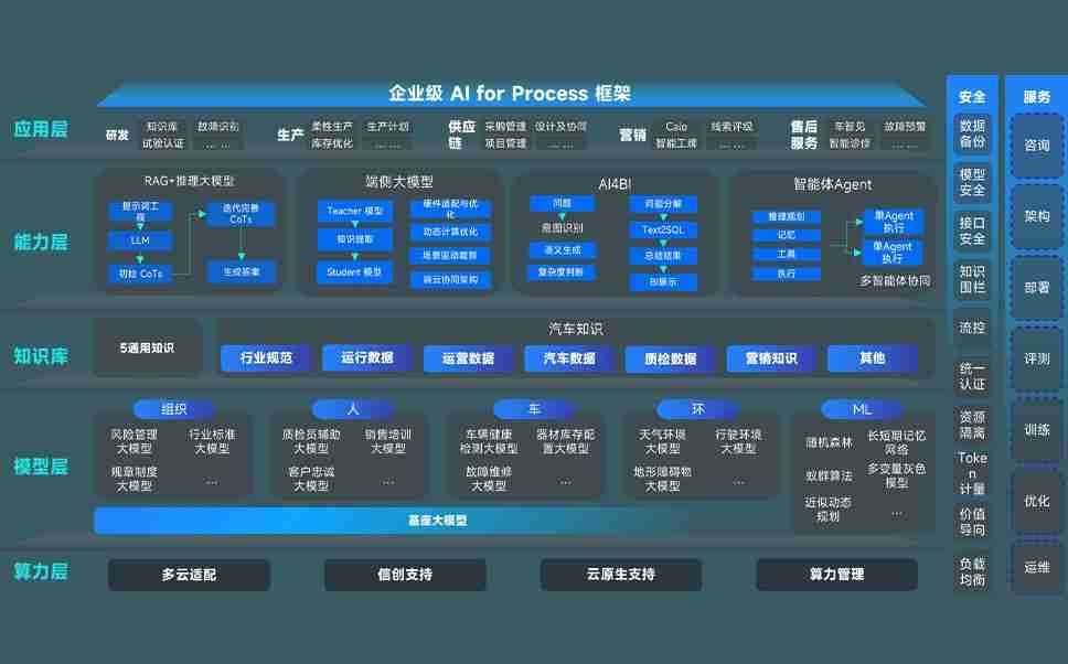 PG国际问学智车解决方案是一套基于AI技术的汽车行业智能化系统,,覆盖从底层算力到顶层AI应用的全栈方案。。。方案由算力层、、模型层和应用层组成:算力层,,,,方案支持多种一体机配置,,,,具备云端灵活部署、、、多云适配以及动态优化计算资源的能力;模型层,,PG国际问学平台版提供了企业级AI应用一站式构建与管理平台,,,支持基于后训练强化技术的汽车企业专属模型的训练、、、、评测和运营;应用层,,,,PG国际问学DeepSeek版提供包括超级员工、、、智能招采、、智能营销、、智能客服、、、、AI for BI等一系列解决方案,,,可助力汽车行业实现数字化转型,,,让管理更智能、、、响应更敏捷。。