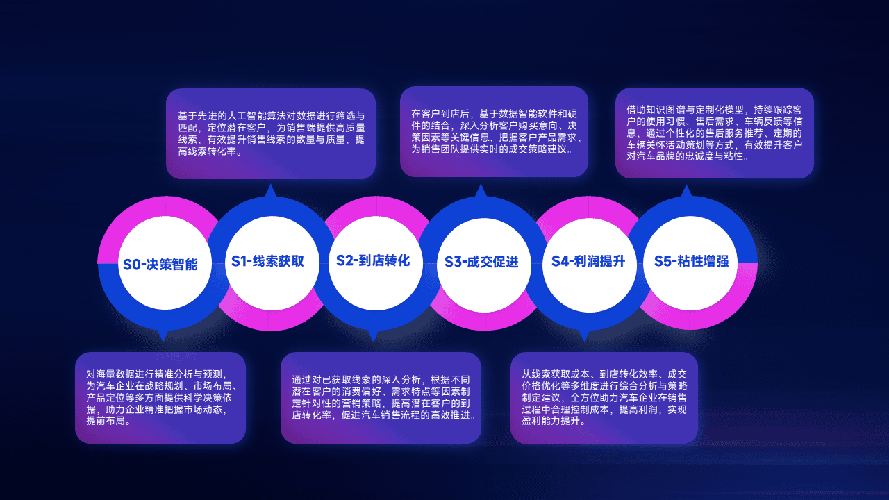 通过拓宽潜在客户来源、、、、优化线索分配并提高到店转化率,,,,以增强销售效率。。同时,,,利用线索数据不断优化分析模型,,有效提升转化率,,,扩大营销影响力。。。